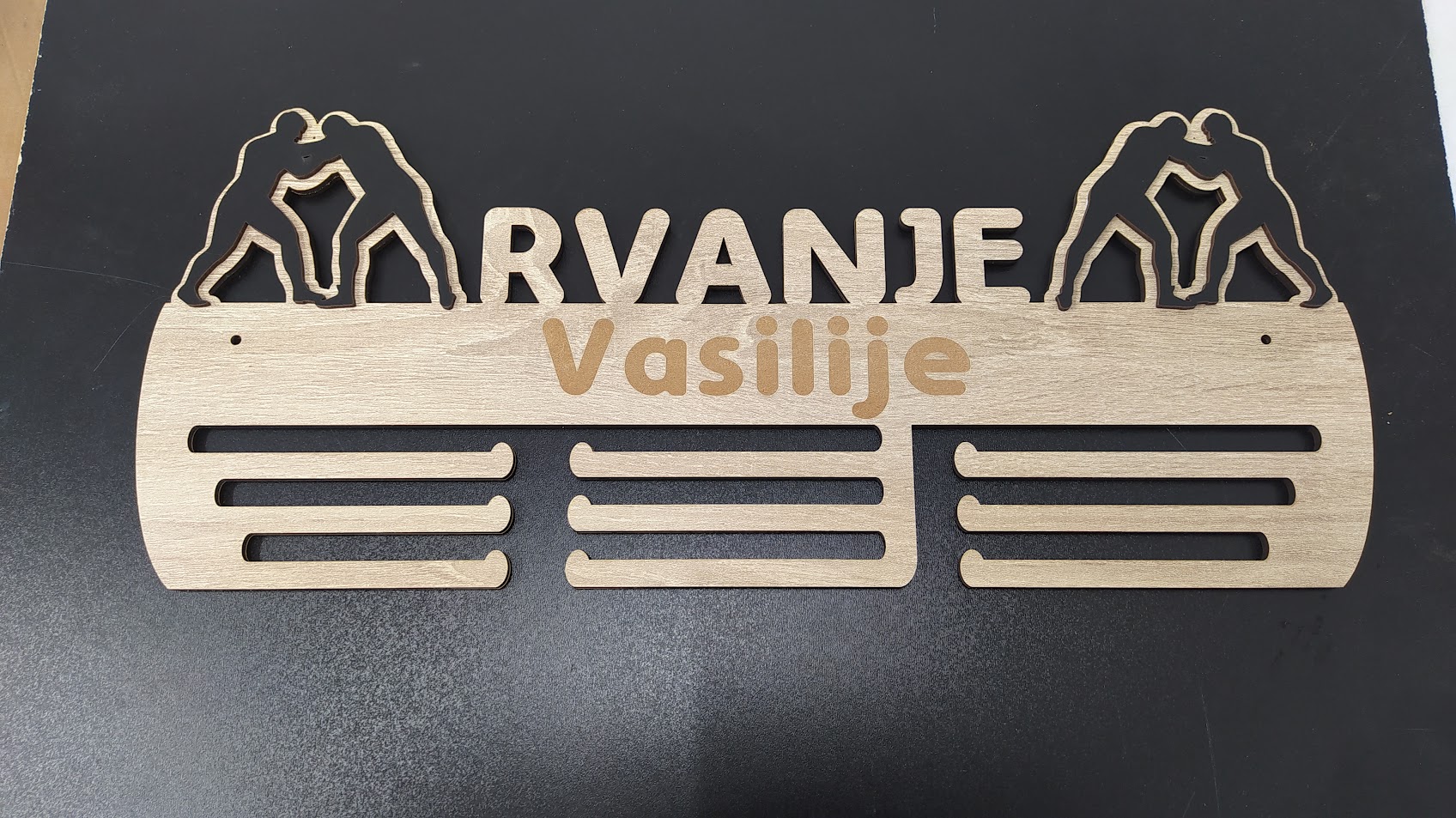 Personalizovani držači za Rvanje od drveta u raznim bojama. Idealan poklon za male šampione.Drži vaše medalje organizovanim.Držač medalja je odličan način da vaše medalje budu organizovane i lako ih pronađete. Umesto da vaše medalje budu razbacane po kući ili zaglavljene u fioci, možete ih držati na jednom mestu. Ovo ne samo da olakšava pronalaženje medalja koje tražite, već i pomaže da se održe u dobrom stanju.Stalak za medalje dolazi u različitim dizajnima i materijalima, što vam omogućava da odaberete onaj koji odgovara vašem stilu i ličnosti. Takođe možete da ga personalizujete dodavanjem svog imena ili motivacionog citata. Personalizovani držač medalje ne samo da dodaje dašak stila vašoj sobi, već je čini jedinstvenom i posebnom.